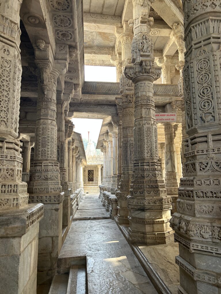 We weren’t originally going to stop here, but we wanted to see the temple and spend the night in a nicer hotel in a peaceful area. Ranakpur Jain Temple was genuinely one of the most beautiful temples we saw on our travels. There weren’t loads of hotel options here, especially in our backpacker budget, but we ended up staying at a really nice hotel that was an oasis after a lot of chaos.