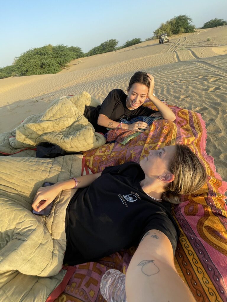 One of my favourite experiences while travelling was when we got to sleep in the desert. And by sleep in the desert, I mean literally a two person cot, out under the sky and stars with a duvet. There isn’t a toilet so I wouldn’t recommend if you have Delhi belly (unless you don’t mind doing your business in a bush). The experience started by being shown a hut we could opt to stay in, having a drink and relaxing while everyone arrived, then people could do a camel ride, walk out to the desert or do a buggy ride in the sand dunes and visit a local town. We opted out of the camel ride for ethical reasons. Later in the evening there was a traditional dance show with live music and a meal. After this we were driven out to the desert to where we would be sleeping. It was incredible seeing the stars and falling asleep outside in such a peaceful setting. The next morning we woke up with the sun to see the sunrise and then got picked up early and taken back.